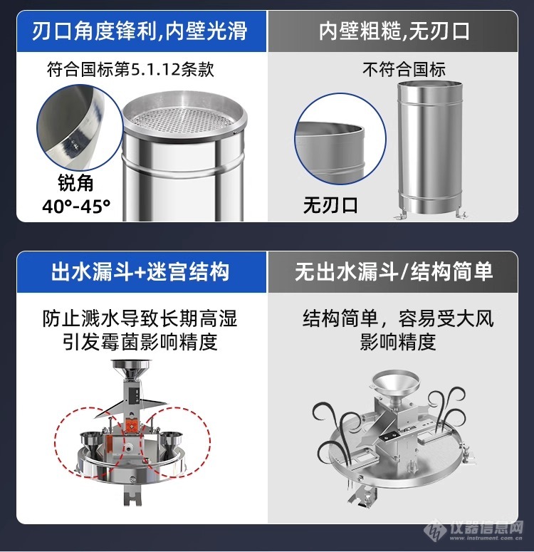 本仪器的核心部件翻斗采用了三维流线型设计,使翻斗翻水更加流畅,且具有自涤灰尘、容易清洗的功能。